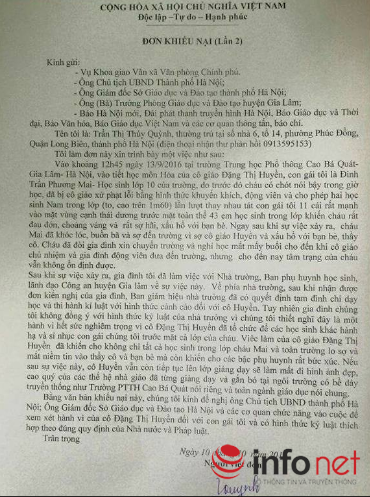 Tuy nhiên, phụ huynh em P.M lại cho đó là hình phạt quá nhẹ và yêu cầu tôi đến ngày 15/10 phải viết đơn nghỉ việc và chuyển trường nếu không thực hiện sẽ tiếp tục viết đơn.