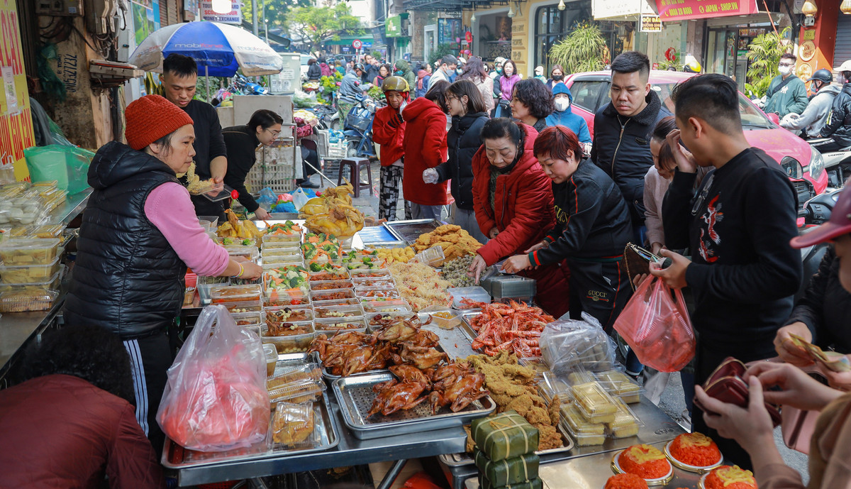 Khu chợ là "thiên đường" của các món ăn ngày Tết như xôi, giò bò, giò lợn, chả bì, bánh chưng, thịt bò khô, chân gà ủ muối, bắp bò ngâm nước mắm...