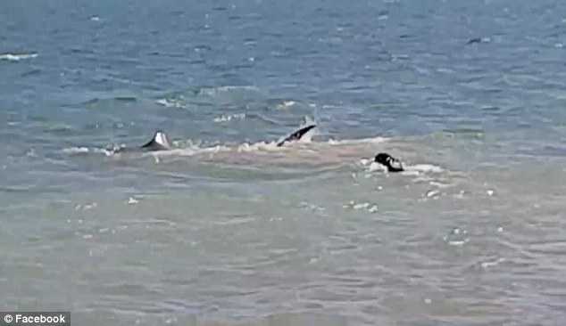 Chó nhà lao xuống biển, đuổi cá mập hổ bơi trối chết