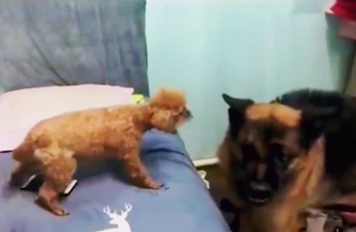 Chủ chó nhỏ to mồm mắng chó to để rồi đến lúc lại bị chó to dằn mặt lại, nằm im thin thít.