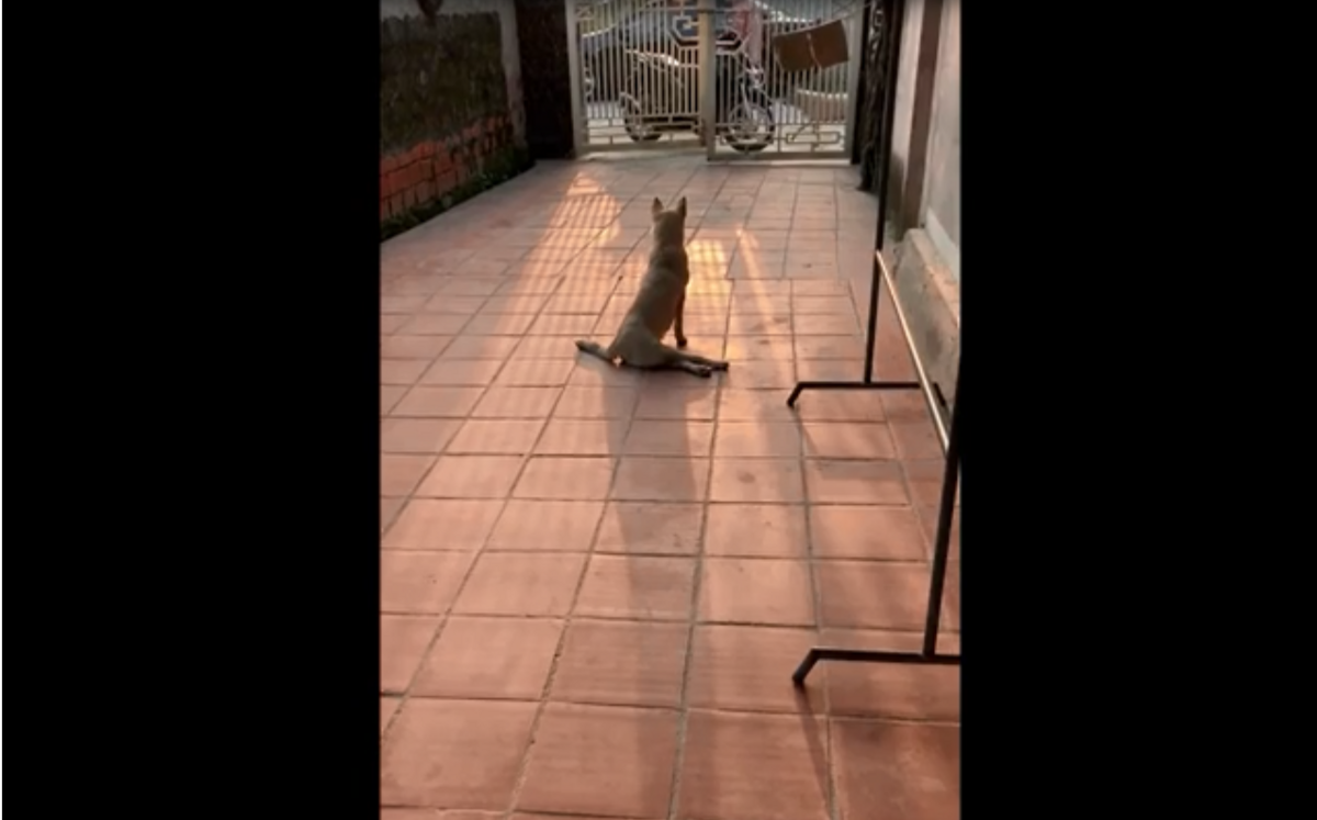 Chú chó đang lê lết giả què bỗng nhổm lên chạy theo "bóng hồng" ở phía xa.