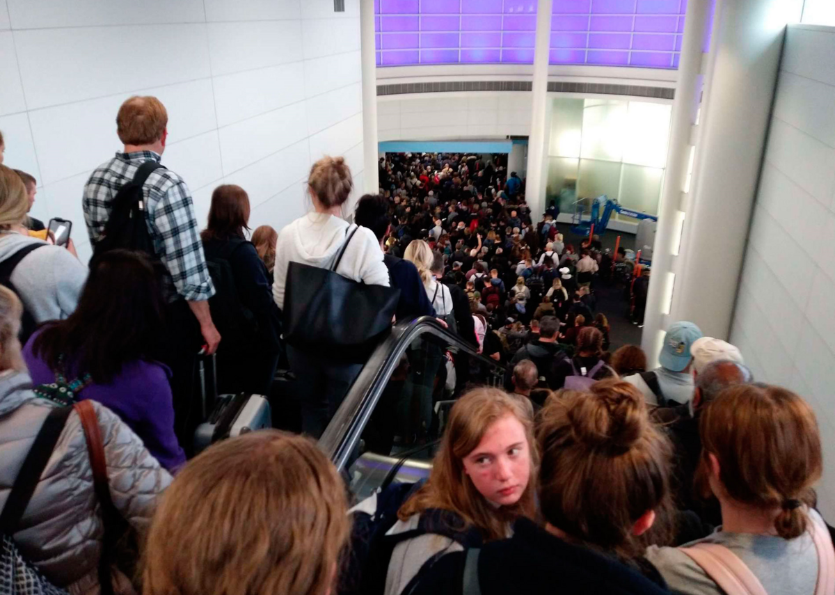 Hành khách phải chờ hàng giờ liền tại sân bay John F. Kennedy. (Ảnh: Twitter)