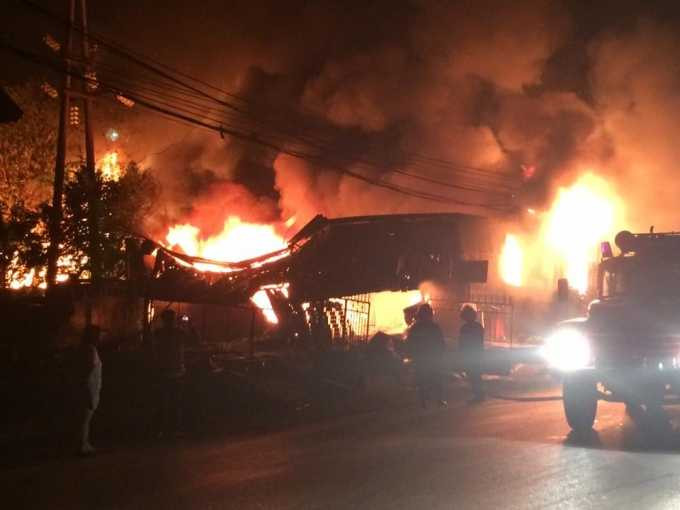 Đám cháy đã lan rộng và bốc cao, ngọn lửa đỏ rực trong đêm khiến nhiều đồ đạc, gian hàng trong khu vực chợ tạm bị thiêu rụi.