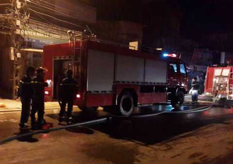 | Khoảng 10 xe cứu hỏa được huy động tới hiện trường dập lửa. |