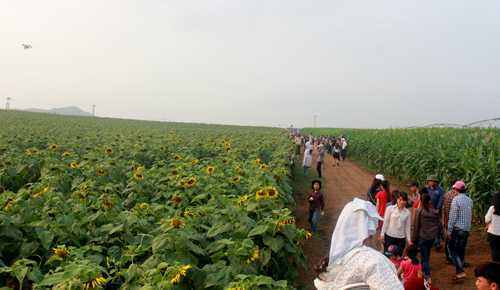 Ông Nguyễn Bá Ngô, người dân ở đây cho biết, cánh đồng hoa hướng dương tuyệt đẹp đột ngột xuất hiện ở đây đã khiến cuộc sống người dân trong vùng ít nhiều thay đổi. Hàng trăm hàng quán mọc lên hai bên đường, phục vụ những đoàn người qua đường dừng lại ngắm hoa, chụp ảnh. Hàng ngàn người dân ở vùng lân cận cũng tìm đến để ngắm hoa, chụp ảnh. Các cặp trai gái cũng vượt hàng trăm cây số để có được những tấm ảnh đẹp, rồi chụp ảnh cưới.