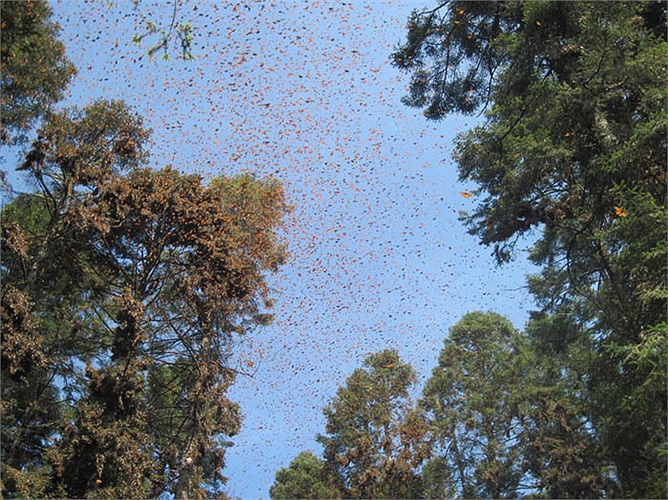 Cứ vào khoảng tháng 8 hàng năm, bướm vua lại tổ chức một cuộc thiên di có quy mô hàng tỷ con.