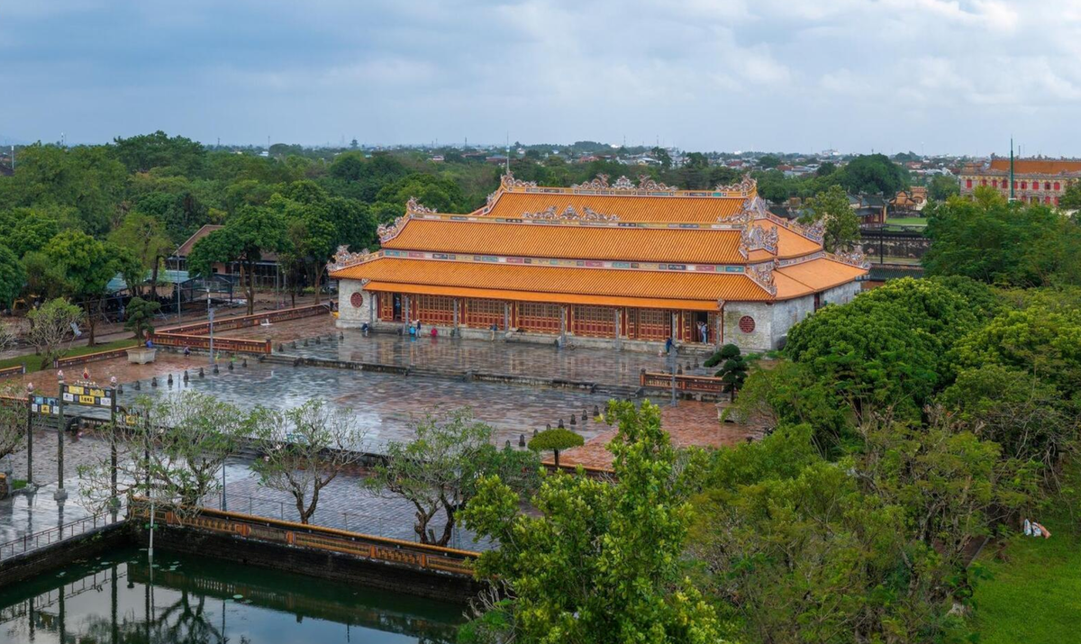 Khu vực trung tâm điện Thái Hoà sau khi trùng tu. Đây là nơi thời xưa các vua nhà Nguyễn ngự để thiết triều, giải quyết các công việc trọng đại của đất nước.