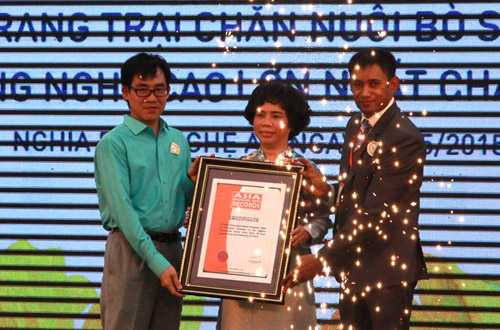 Ngày 16/5/2015, tại Nhà máy sữa tươi sạch TH true MILK (xã Nghĩa Bình, Nghĩa Đàn, Nghệ An), tiến sĩ Biswaroop Roy Chowdhury, Tổng Giám đốc Tổ chức Kỷ lục châu Á, đã trao cho Tập đoàn TH giấy chứng nhận "Kỷ lục Cụm trang trại chăn nuôi bò sữa tập trung ứng dụng công nghệ cao lớn nhất châu Á". Trong buổi lễ này, Tập đoàn TH cũng đã long trọng tổ chức lễ đón nhận Huân chương Lao động hạng Ba.