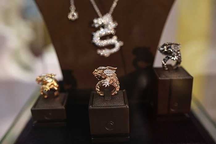 Bên trong cửa tiệm, đồ hiệu và kim cương được bày la liệt.