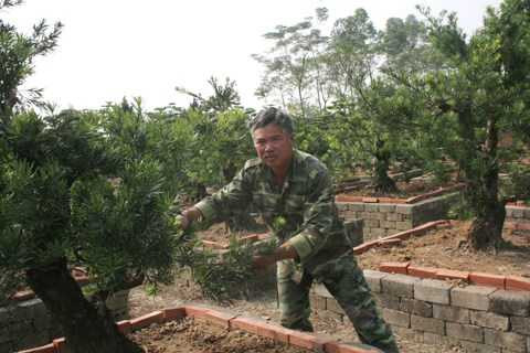 Ngoài cây lộc vừng, hiện trong vườn ông Hương đang chăm sóc, có hơn 100 cây tùng kim, 30 cây tùng la hán. Trước đây ông từng mua với giá 2 cây vàng/một cây tùng la hán. Qua thời gian chăm sóc, hiện mỗi cây giá cũng không dưới 150 triệu đồng.