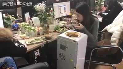 Choáng váng clip nữ công sở nấu lẩu trong văn phòng bằng bình lọc nước