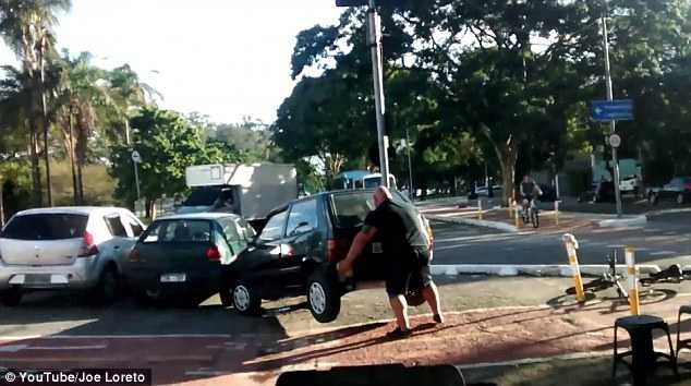 Đang thủng thẳng đạp xe đi dạo, người đàn ông gặp chướng ngại vật là một chiếc ô tô đỗ vào phần đường dành riêng cho xe đạp. Bình thường, ta sẽ phải lách xe đạp ra tránh. Nhưng người đàn ông ở Brazil có sức khỏe phi thường. Bằng tay không, anh ta nhấc bổng chiếc ô tô lên, dọn đường để tiếp tục cuộc hành trình.