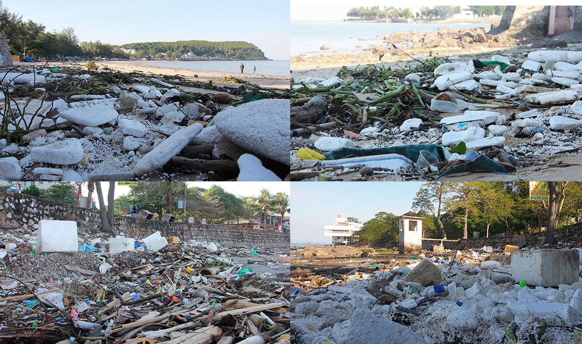 Bãi biển còn có rác thải sinh hoạt như túi nilon, hộp xốp, xác động vật, các loại đồ ăn, đồ đựng thức ăn, đồ dùng, dụng cụ, công cụ...