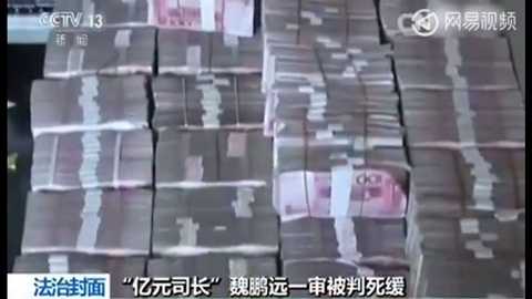 Theo phóng sự, đây là số tiền được tìm thấy trong căn hộ bỏ trống thuộc sở hữu của ông Wei Pengyuan - Nguyên Vụ phó Vụ Than thuộc Ủy ban Phát triển và Cải cách Quốc gia Trung Quốc.