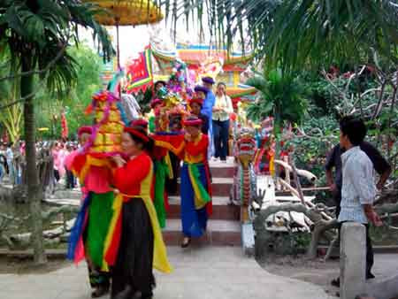 | Đội lễ vật dạo 1 vòng quanh vườn 'mẫu' trước khi dâng lên 'mẫu' |