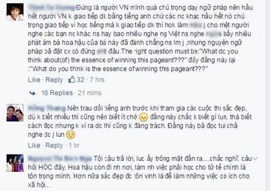 | Khán giả hầu hết đều thể hiện sự thất vọng trước kỹ năng nói tiếng Anh của người đẹp Thu Vũ. |