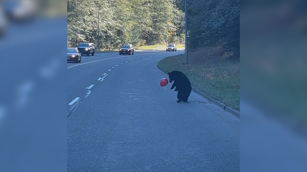 Chơi đùa với bong bóng, gấu đen gây ùn tắc giao thông