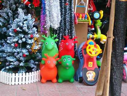 Theo khảo sát của PV VTC News, tại nhiều phố ở Hà Nội như: Lương Văn Can, Nghĩa Tân, Cầu Giấy, Ngã Tư Sở,…các loại thú nhún với đủ loại màu sắc xanh, đỏ, vàng,…vẫn được bày bán tràn lan trong các cửa hàng.