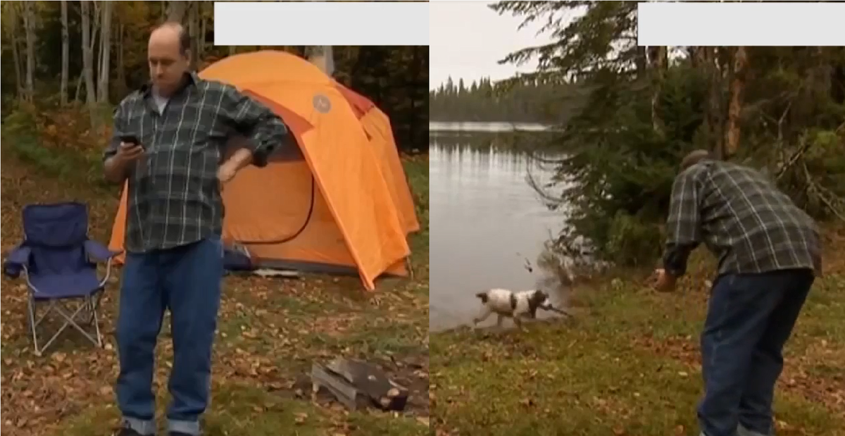 Lẽ ra vứt cành cây xuống hồ cho cún cưng bơi ra nhặt thì người đàn ông lại lú lẫn ném chiếc điện thoại yêu quý của mình xuống nước.