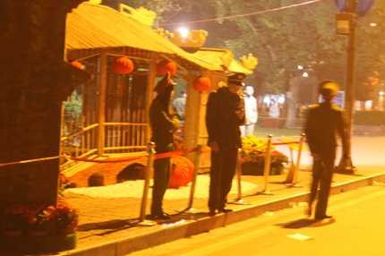 | Những chiến sĩ công an và bảo vệ sẽ thức suốt đêm để canh chừng lễ hội cho đến sáng hôm sau. |