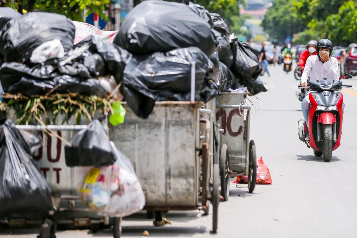 Từ giữa tháng sáu, rác thải sinh hoạt bị ùn ứ, chất đống trên nhiều tuyến phố nội thành Hà Nội. (Ảnh: Ngô Trần).