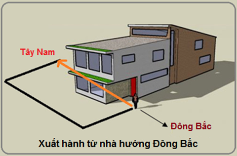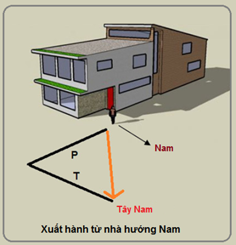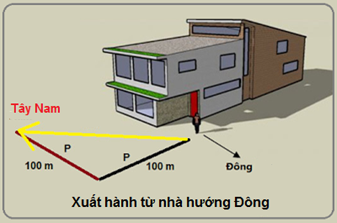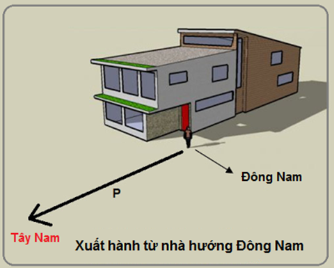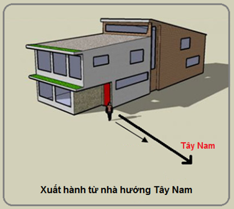 Ra khỏi nhà, rẽ phải, bạn đã đi theo hướng Tây Nam rồi.