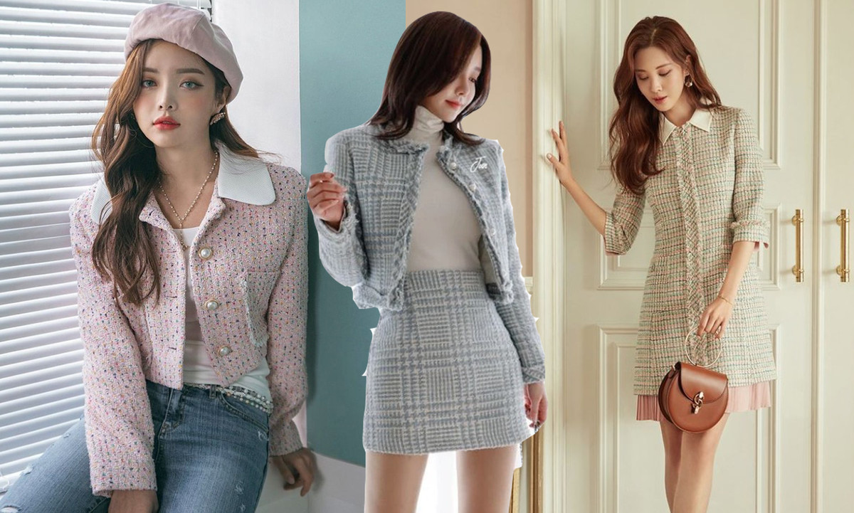 Set dạ tweed được xem là lựa chọn thời thượng và sành điệu mà không cần tốn công phối đồ. Nếu không muốn mặc theo set, chị em có thể tách riêng để phối. Áo tweed nàng phối cùng quần shorts, chân váy thì kết hợp với áo sơ mi hoặc nhiều kiểu khác theo sở thích. Đặc biệt đây là phong cách được nhiều chị em lựa chọn trong những mùa lễ hội cuối năm.
