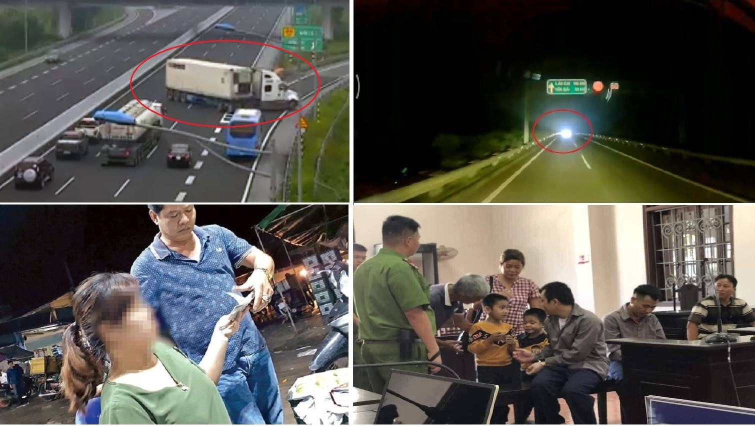 Xe tải rọi đèn pha lao ngược chiều trên cao tốc Hà Nội - Lào Cai đêm 13/11. (Nguồn: HT)