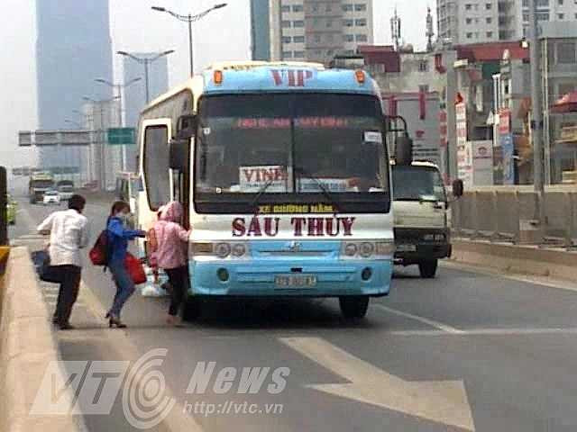 | Hình ảnh xe khách vô tư đón trả khách ở đường trên cao do VTC News ghi lại. |