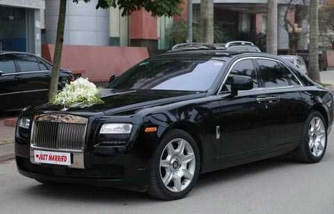 | Đoàn xe rước dâu xuất hiện siêu xe Phantom Drophead Coupe. Tại thị trường Việt Nam, phiên bản mới của nó có giá khoảng 21 tỷ đồng. Ảnh: Lao Động. |