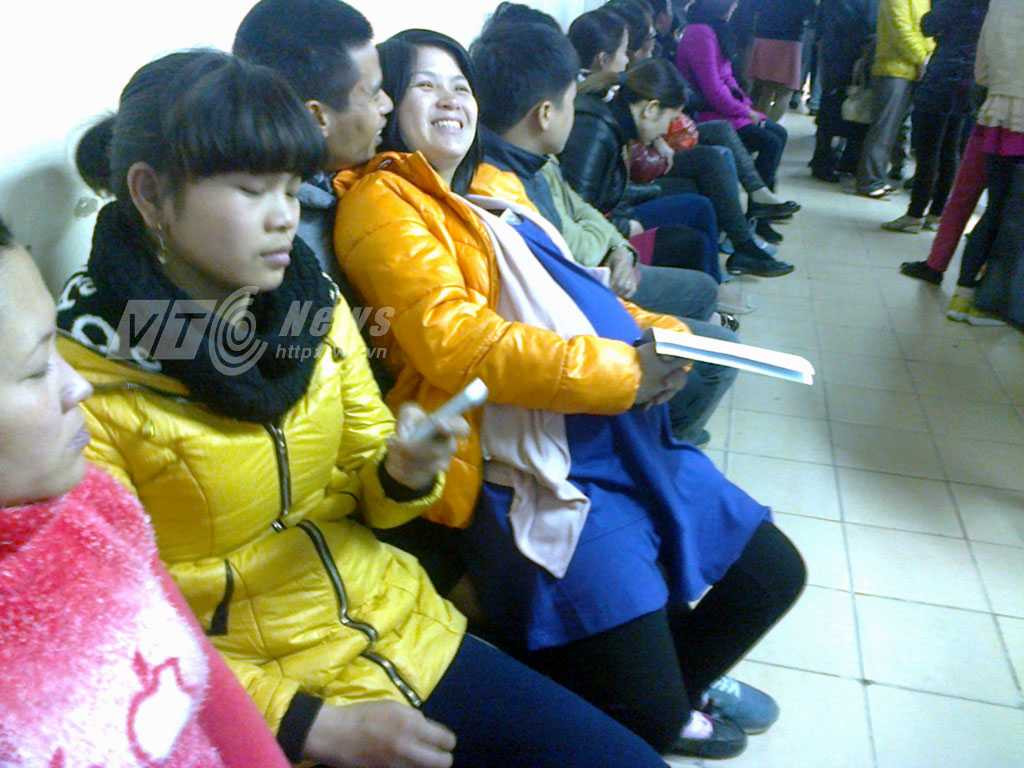 Phía ngoài, bà bầu xếp hàng dài đợi lấy số, hành lang dọc các phòng khám, các ghế đợi không còn chỗ, bà bầu phải đứng chờ đến lượt khám.