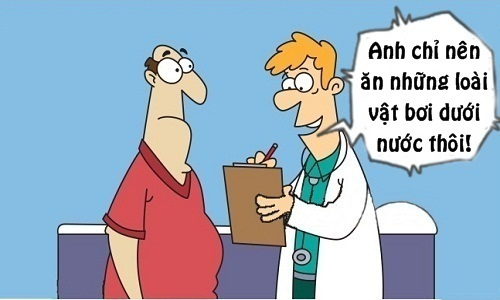 - Bác sĩ bảo tốt nhất anh chỉ nên ăn những loài vật bơi dưới nước thôi.