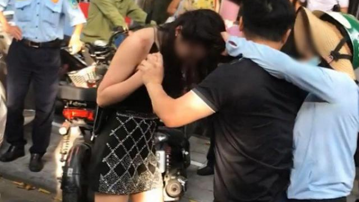 Cô gái trẻ bị người vợ túm chặt tóc đánh đập nhưng không thể phản kháng, chỉ khóc lóc và la hét giữa đường. Đáng nói, người chồng ra sức bảo vệ cô gái trẻ, thậm chí còn đánh đấm và thúc khuỷu tay nhiều cái vào mặt vợ để cô gái trẻ chạy thoát.