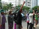 | Hàng chục nông dân lớn tiếng đòi nợ cá trước nhà đại gia Diệu Hiền. Ảnh: Ái Nam |