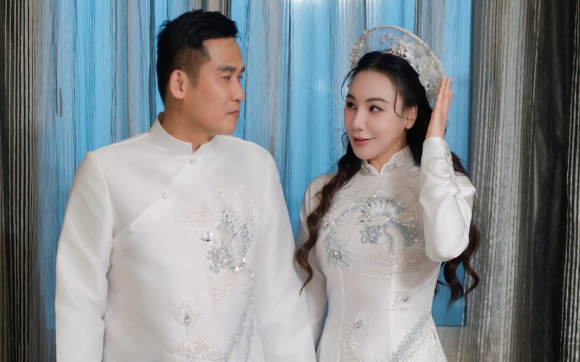 Hồ Quỳnh Hương diện áo dài trắng mang tên Bạch Song Phụng trong lễ cưới.