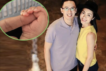 Tuy nhiên, mới đây, ông xã cô - doanh nhân Louis Nguyễn đã chia sẻ tấm hình cậu quý tử nắm chặt tay mình trên tài khoản riêng. Bức ảnh ngay lập tức 'gây sốt' trên cộng động mạng bởi đây là lần đầu tiên, Louis công khai về con trai tròn 1 tháng tuổi.