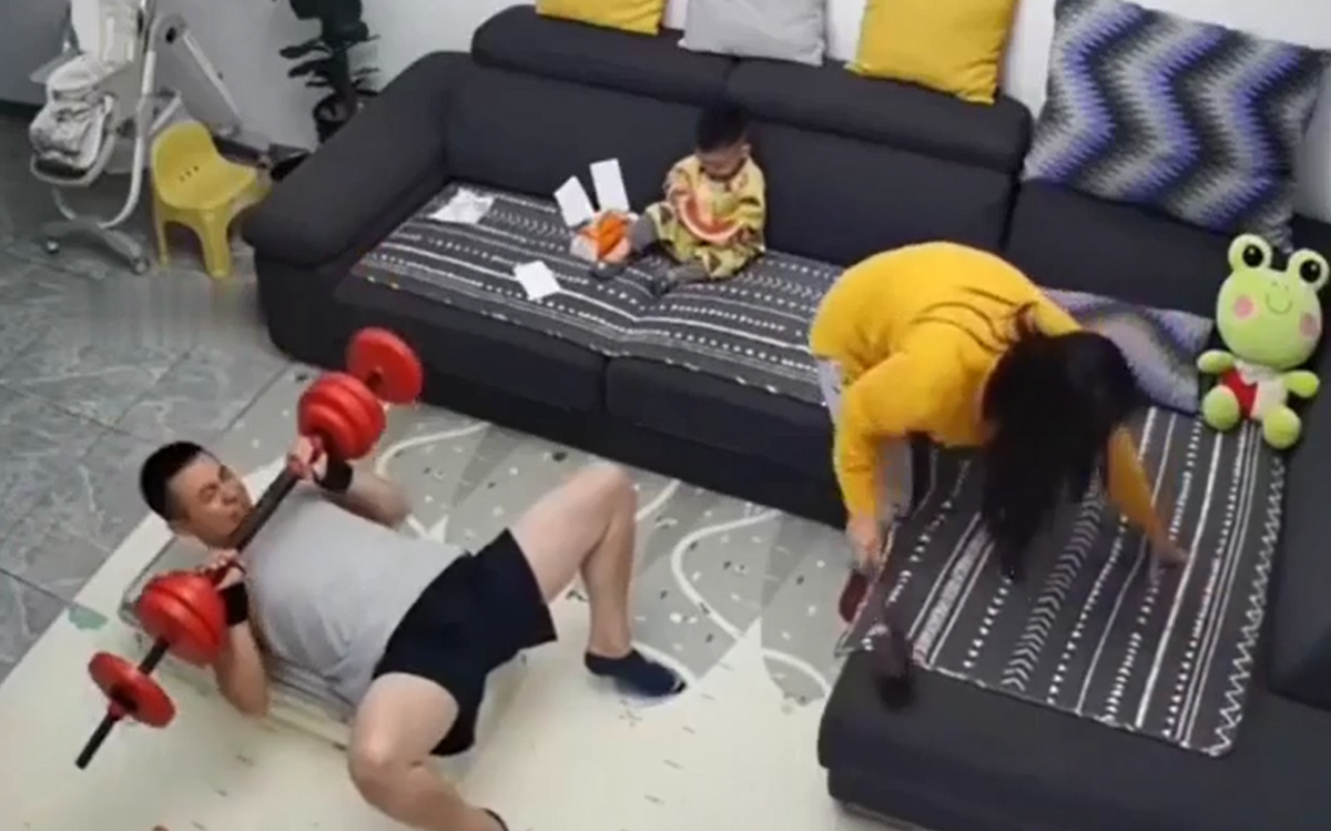 Chồng hết hồn thấy vợ dùng một tay nhấc tạ