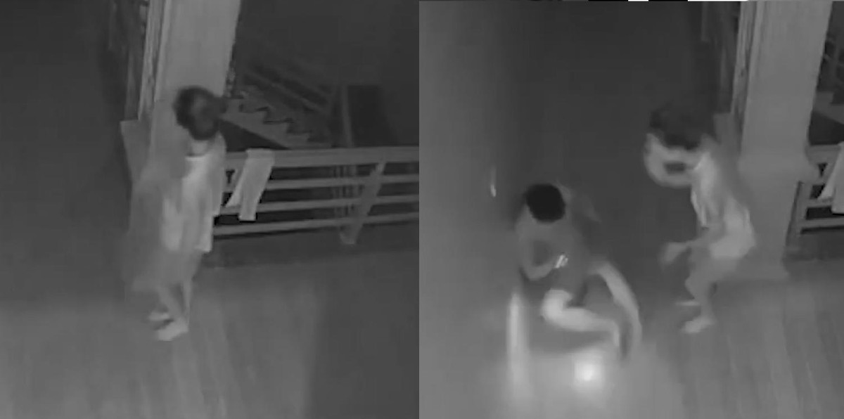 Giữa đêm, người vợ núp sau cây cột dọa ma khiến chồng giật mình ngã ngửa xuống nền nhà.