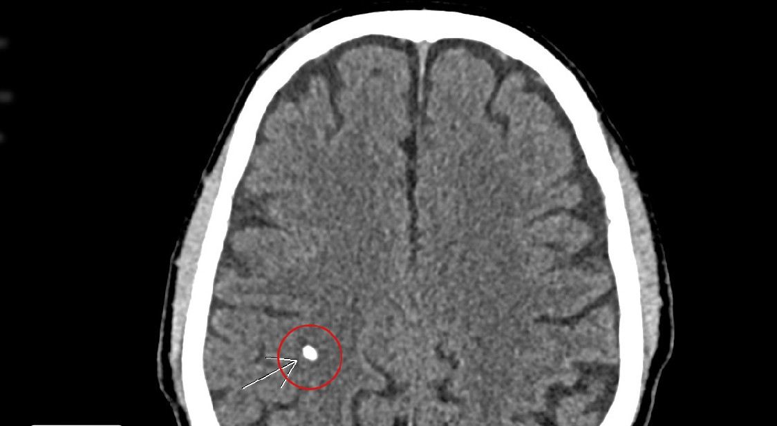 Nhu mô não có hình ảnh rải rác các di chứng ấu trùng sán não, kèm theo tổn thương viêm đa xoang, xơ vữa vôi hoá động mạch cảnh hai bên đoạn xoang hang.