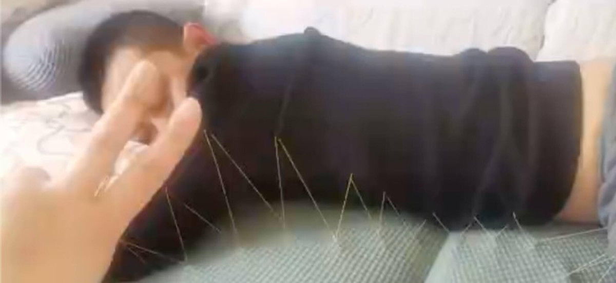 Cuối cùng, anh chồng đã tiếp tục ngủ trên ghế sô pha hơn 5 tiếng đồng hồ. Càng nghĩ càng giận, cô vợ quyết định dùng... kim chỉ khâu dính quần áo của chồng vào ghế sofa.