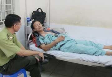 | Một cán bộ kiểm lâm bị lâm tặc hành hung, gây thương tích năm 2012. Ảnh: Pháp luật TP.HCM |