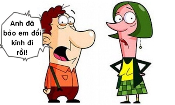 - Ý anh là lần sau em mang kính loại mờ mờ một chút, nhìn không thấy rõ thì thế nào cũng đẹp thôi!