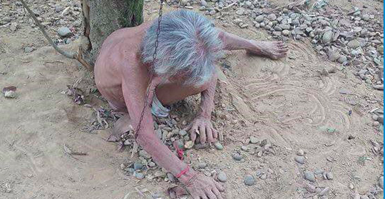 Hình ảnh bà Nguyễn Thị Cụt bị buộc vào gốc cây lan truyền trên Facebook.