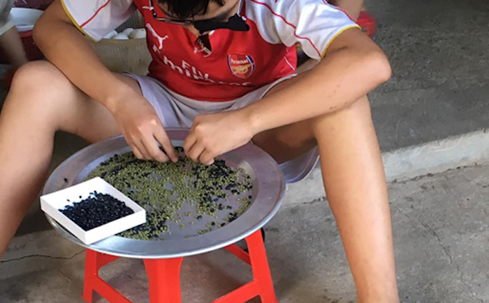 Cô vợ lấy đậu xanh trộn với đậu đen để chồng ngồi lựa, lựa hết mới được phép đi.