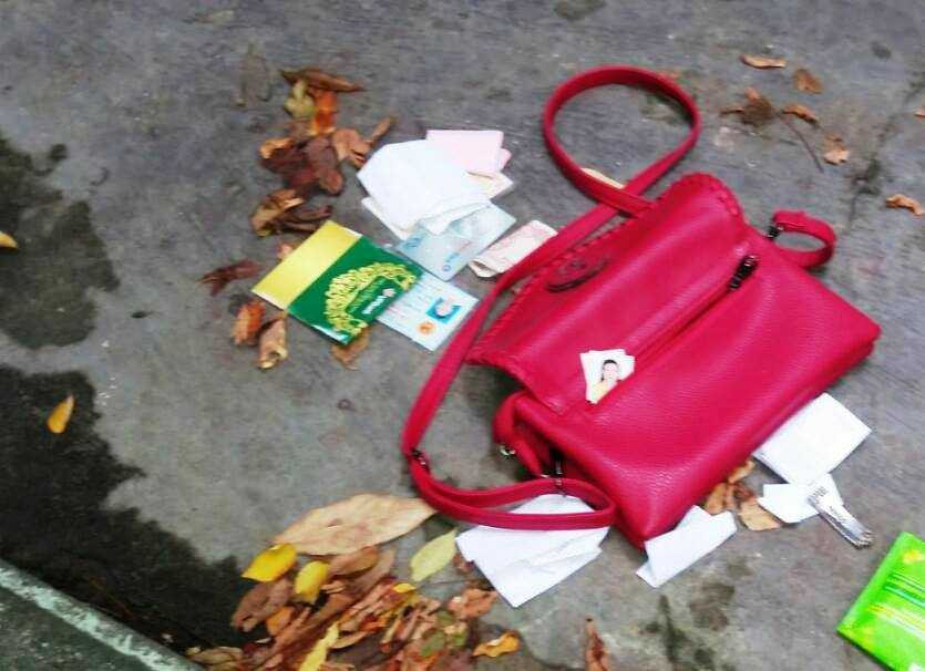 Chiếc túi xách của chị Thúy bị kẻ trộm mang ra sân lục lọi để lấy tài sản.
