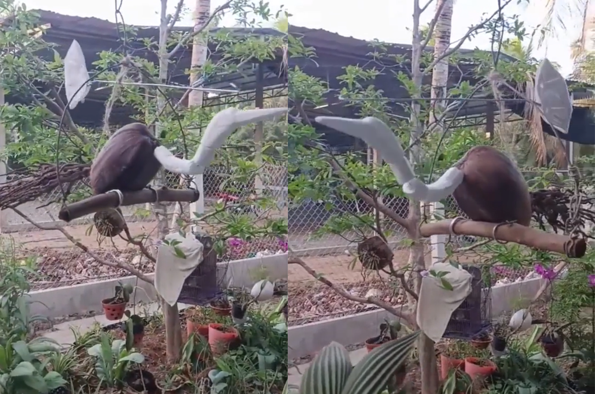 Câu chuyện được người em kể lại đính kèm cùng với đoạn clip: “Ông anh tôi mê chơi chim lắm nhưng vợ thì lại không cho nuôi nên ổng làm tác phẩm này, ổng bảo ngày mai ổng gắn thêm cái loa bluetooth, rồi ở trong nhà bật tiếng chim hót nữa là thỏa đam mê”.