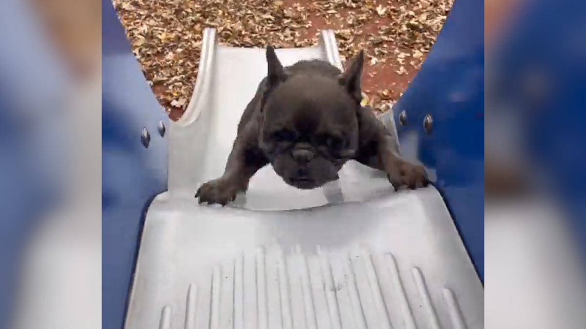 Một chú chó Bulgie ở Budapest, Hungary rất thích chơi cầu trượt, chú làm mọi thứ xung quanh cầu trượt khiến người xem thích thú.