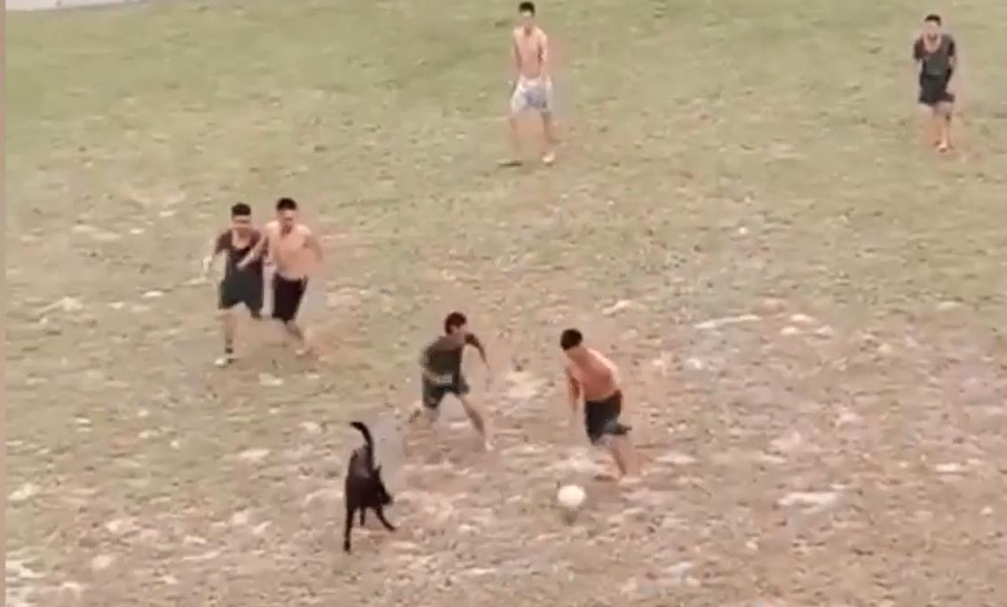 Chú chó đá bóng điêu luyện cùng nhóm thanh niên