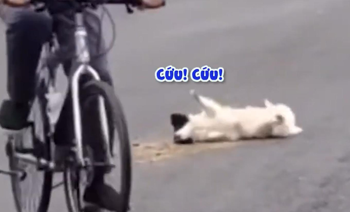 Chú chó nằm giữa đường vờ bị thương, kêu la thảm thiết nhưng cuối cùng chẳng lừa được ai.
