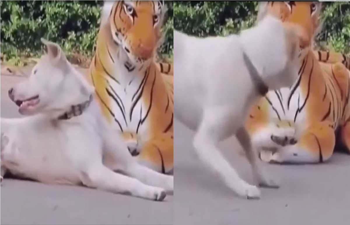 Màn chơi khăm của thanh niên đã thành công khiến chú chó được phen sợ xanh mặt.